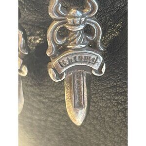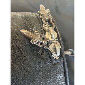 This rare handbag combines a sleek black leather exterior with iconic Chrome Hearts silver accents, offering a refined and durable accessory for everyday use.