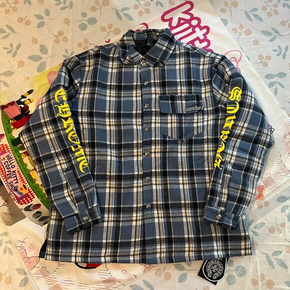 Chrome Hearts Sanskrit Check Quilted Shirt Blue And Black Check