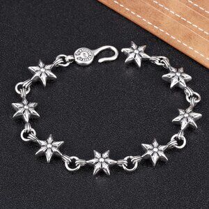 A trendsetter's "Dark Romance Double Buff"! Made of silver with a distressed vintage feel, the stars are exquisitely shaped, each one resembling a glittering star in the dark night sky. It's an eye-catching everyday accessory, perfect for showcasing your style alone or creating a layered look when stacked.