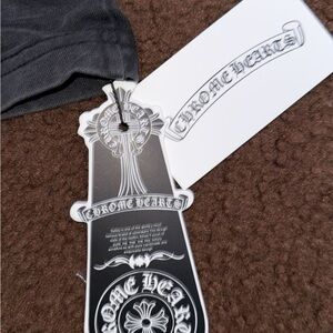 Distinctive Chrome Hearts tag in black and white. Iconic branding.