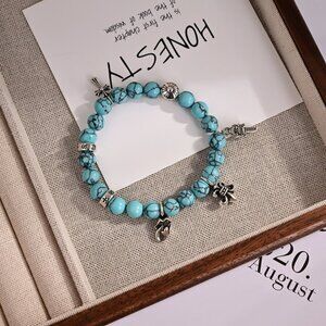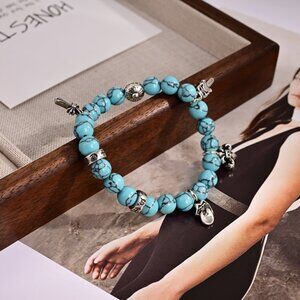 Chrome Hearts Turquoise Silver Bracelet: Clear turquoise beads paired with vintage-finished silver decorations are full of retro charm. There are also exquisite small pendants for embellishment, creating a strong sense of detail.