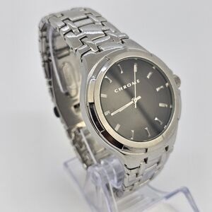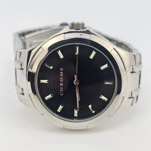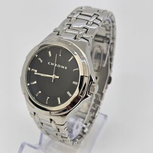 Chrome Men's Watch 42MM Black Dial Gray Case Bracelet Band 7.5" New Battery