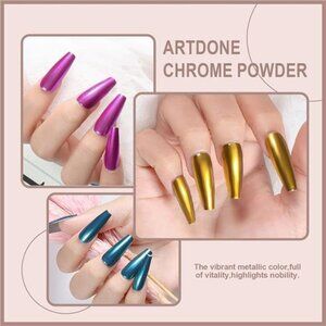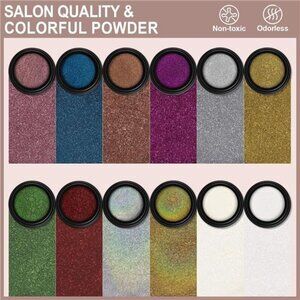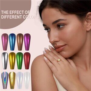 🧿【PACKAGE CONTAINS】: 12 pcs(each 1gram) Artdone Chrome Nail Powder, 2 for white based chrome nail mirror pigment powders, 10 for colored mirror chrome powder. They needs to be used with gel nail polish and no wipe top coat.