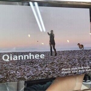 Beautiful chrome color picture frame with propped stand on the bottom. Can fit up to 8x10 picture.