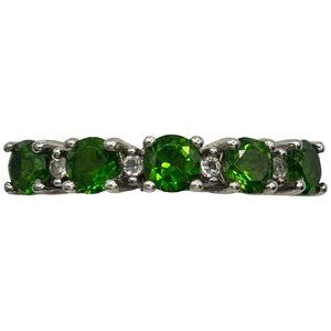 Chromium Diopside with White Topaz Rhodium Plated Sterling Silver Ring - Size 9