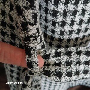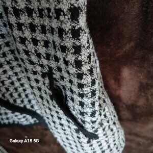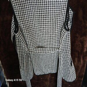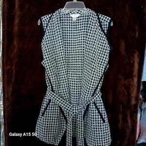 Christopher & Banks Tweed Vest XL Polyester Acrylic, large lapel, vest/cardigan. black & white checked, with belt loops and belt