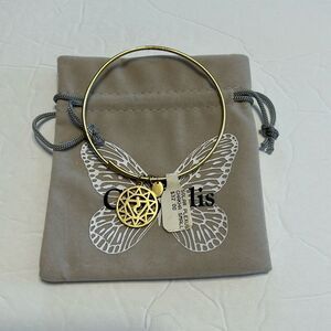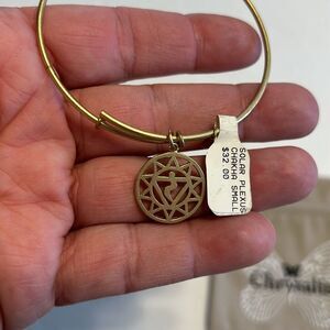One size fits most Chrysalis Solar Chakra gold expandable stackable bangle bracelet. This new with tag bracelet is new, never used with tags attached and comes with a pouch.