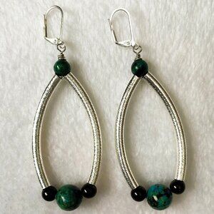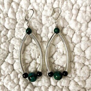 Chrysocolla and Garnet with Silver Genuine Gemstone Earrings, Handmade Original