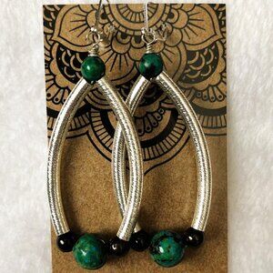 The gorgeous blue and green hues of genuine Chrysocolla are enhanced by the deep red of Garnet and shiny silver tubes.