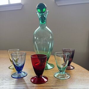 Multi Color Glass Cordial Decanter with Stopper Set of 7 Pieces (Orig.8pcs-missing Clear cordial):