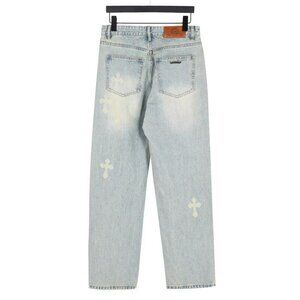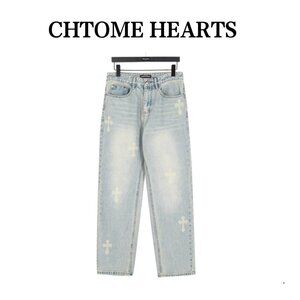 Chtome Heart classic white cross denim pants with a unique, high-end texture.S