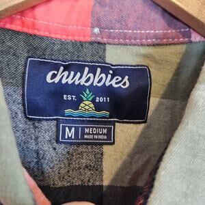 Chubbies Be Glad Wear Plaid Olive Green Flannel Button Shirt Men's Medium