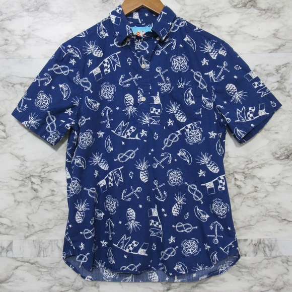 Chubbies Blue Nautical Printed Men's Popover Shirt Size Small Pineapple Anchor