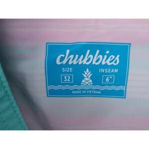Chubbies Boardshorts Mens 32 Inseam 6" Green Pink Striped The Gum Drops Stretch