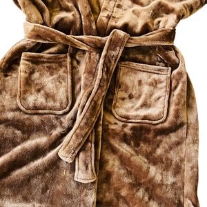 Soft brown robe with eagle hood. Features wing-like sleeves. Perfect for lounging.