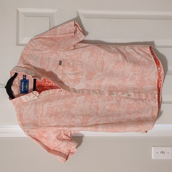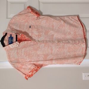 Faded orange floral pattern. Contrast(?) deeper orange inside.