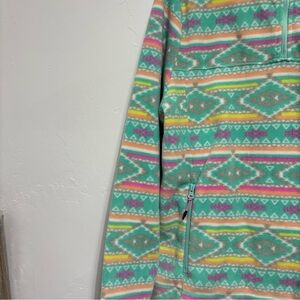 Chubbies Colorful Southwestern Aztec Women Fleece Pullover 1/4 Zip Large Bright