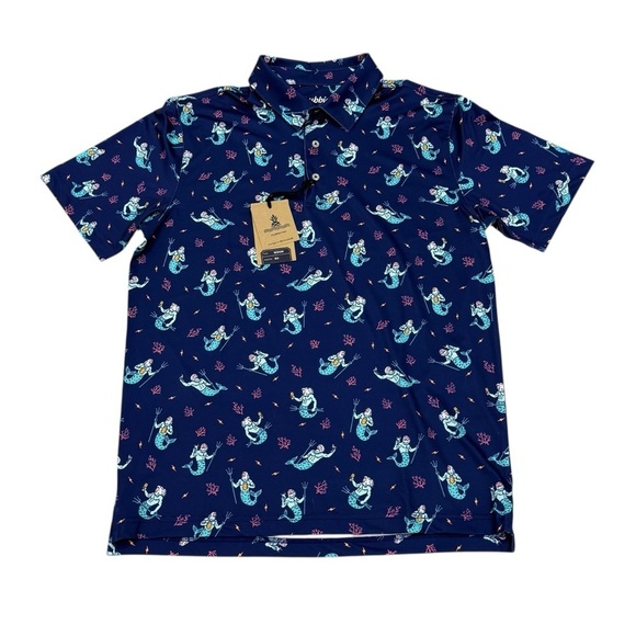 Chubbies Golf Polo Men's Medium The Triton Of The Sea Performance Polo Blue NEW