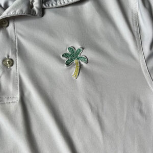 Chubbies polo, golf shirt, palm tree print, preppy golfwear, performance polo, men’s medium, resort wear, summer polo, beach golf shirt, tropical print polo, Y2K preppy, casual country club style
