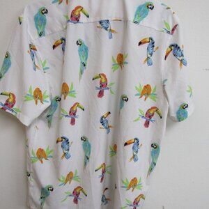Chubbies Hawaiian toucan, parrot, macaw AOP short-sleeve golf polo shirt. Size XL. 23.5" armpit to armpit and 32" top of collar to bottom of hem. Very nice condition. 4803