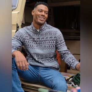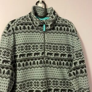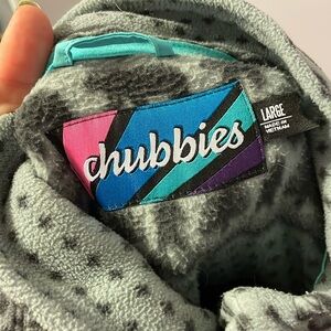 Chubbies Low Pile Fleece Quarter Zip Pullover The Bear Hug Size L gray. Very good preowned condition. Fun all over design. See pictures for approximate measurements.