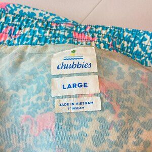 Chubbies Men L Swim Trunk Mesh Lined Flamingo Blue 7" Inseam Beach Pool Vacation
