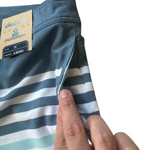 Dive into style with Chubbies men's swim trunks. Featuring a vibrant blue striped design, these trunks are perfect for any beach day.
