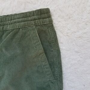 In excellent condition, green corduroy, 5.5' inseam, regular fit, elastic waist with drawstring, zip/snap button closure, front pockets, back snap pocket, casual, size XL.
