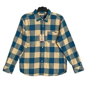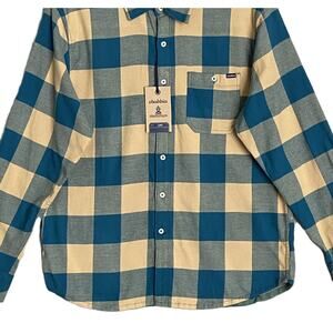 This listing is for a new with tags Chubbies Men's Large "Dusk Before Dijon" Flannel Shirt in a Blue & Mustard Gingham Pattern. Long Sleeve, Spread Collar, Chest Pocket w/Button, Stretch Fabric. 98% Cotton, 2% Elastane, Machine Washable.