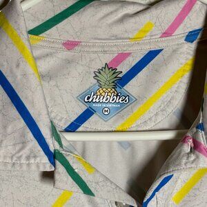 Chubbies Mens Medium Polo Shirt Multicolor 80s Style Brush Strokes Short Sleeve