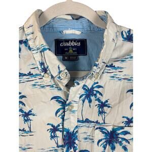 Chubbies Men’s Resort Wear Paradise White/Blue Stretchy Button Down Size Medium
