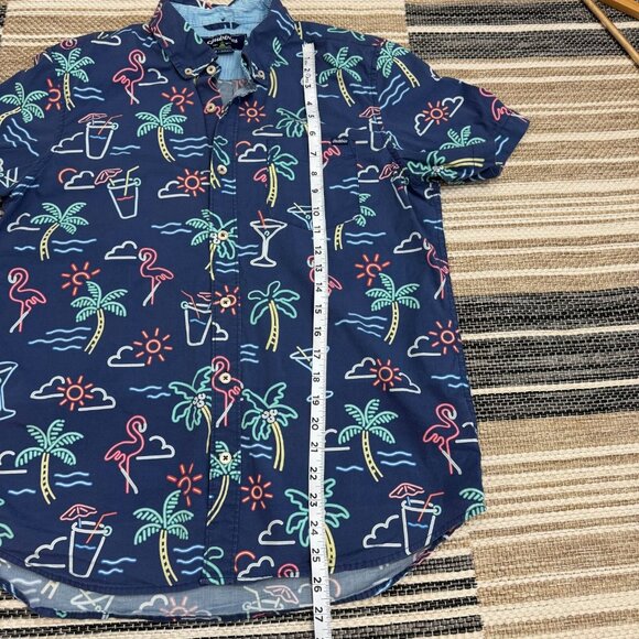 Chubbies Mens The Neon Lights Friday Button Down Short Sleeve Shirt Blue Size M