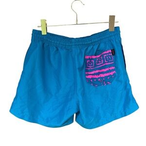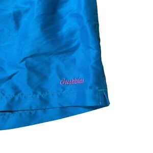 Chubbies | Men’s Trunks, Blue Shorts with Pink Patterned Pocket, Size Large
