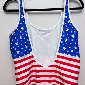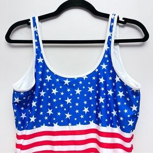 Show your patriotic spirit with this Chubbies one piece. Features a blue starry top and red striped bottom. Perfect for summer fun.