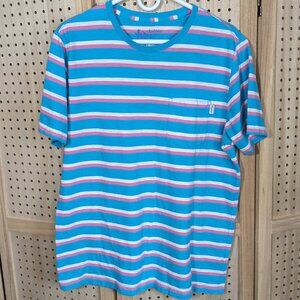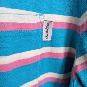 Chubbies Pink, White & Aqua striped t-shirt, front pocket, short sleeve -- such great colors!
