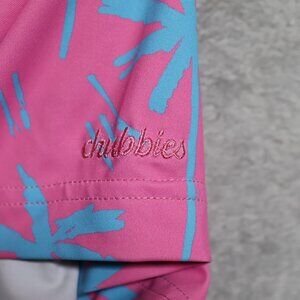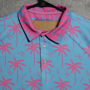 Chubbies Polo Shirt Mens Large Blue Pink Palm Tree Tropical Performance Stretch
