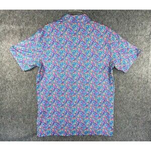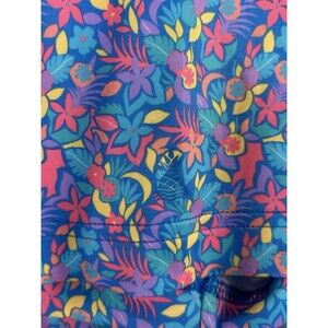Chubbies Polo Shirt Men's Medium Pink Blue Floral Print Golf Short Sleeve