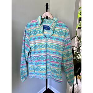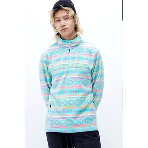 The Flame Commander 1/4 zip Sweatshirt features a standing collar, 1/4 zipper closure, long sleeves, two side zipper pockets, a standard fit, and a vibrant fleece fabrication with a custom pattern throughout.