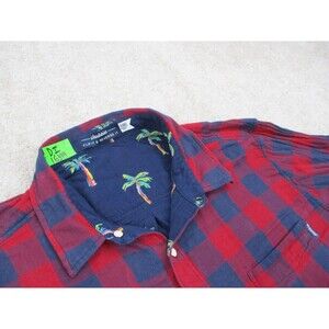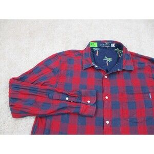 Chubbies Shirt Men Extra Large XL Reversible Pearl Snap Plaid Palm Trees Casual