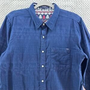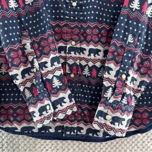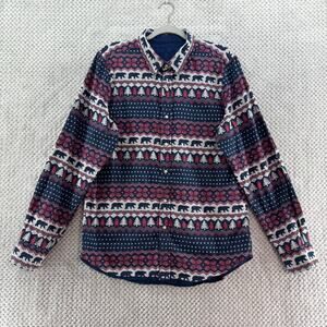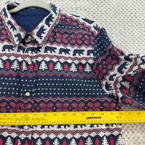 Chubbies Shirt Men L Blue Flip It Reverse It Christmas Bear Pearl Snap Button