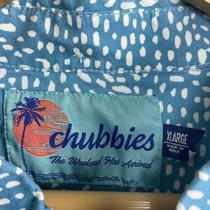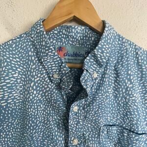 Chubbies Shirt Men's Shirt XL Button Down Polo S/S Print Ombre Turquoise White