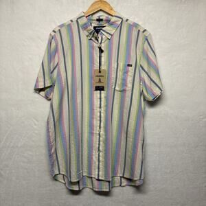 Chubbies Short Sleeve “Soft Serve” Friday Striped Button Up Shirt White Size XL