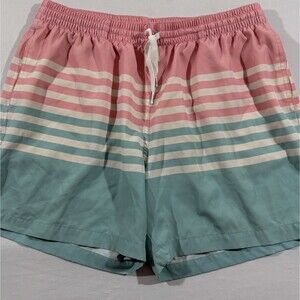 Chubbies Mens XL Swim Trunks Pink White Blue Stripe 5.5 Mesh Lined Shorts