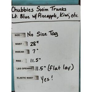 Chubbies Swim Trunks Lt. Blue Pineapple Kiwi Print Zipper Pocket No Size Tag