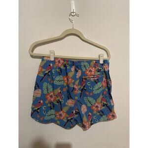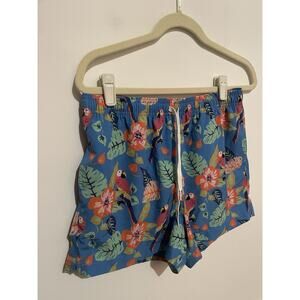 Chubbies Swim Trunks Mens Medium Blue Floral Tropical Toucan 4 Inch Inseam
