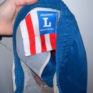 These Chubbies swim shorts are designed for comfort, style, and adventure. Made from quick-drying, lightweight fabric, they offer a flexible fit with an elastic waistband and adjustable drawstring. Featuring a mesh lining and deep pockets, they’re both functional and fun. Perfect for the summer and 4th of July