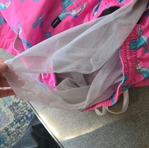 Bright pink shorts featuring a fun toucan pattern. Ideal for summer fun.