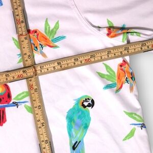 The Chubbies The Birds Of Polodise Performance Polo Shirt in size Medium features a fun and colorful design with a parrot and toucan theme. Made of comfortable fabric and crafted with a regular fit, this polo shirt is perfect for men who want to add a touch of bird-themed flair to their wardrobe. The white background and multicolor bird motifs make this shirt a stylish and unique choice for any casual or semi-formal occasion.