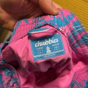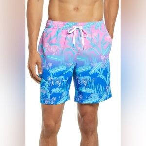 Chubbies The Hydrofoils Classic Swim Trunks in Pink/Blue Jungle 7” Inseam