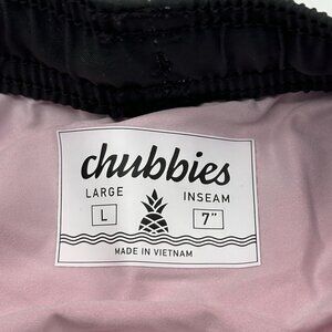 This listing is for a new with tags pair of Chubbies The Living Colors 7" Inseam swim trunks shorts in a size large. This pair of shorts was made in Vietnam. Measurements are as follows: un-stretched waist is 30“/fully stretched is 33", inseam is 7“, front rise is 12“, back rise is 13“, and thigh cuff length is 24“. Note: measurements may differ from brand’s sizing. Please see all listing photos, as this pair of shorts are for sale in as/is new with tags condition.